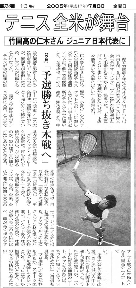 ■ 仁木君全米オープンジュニアに日本代表で出場おめでとう!! ■ 頑張ってください!! |