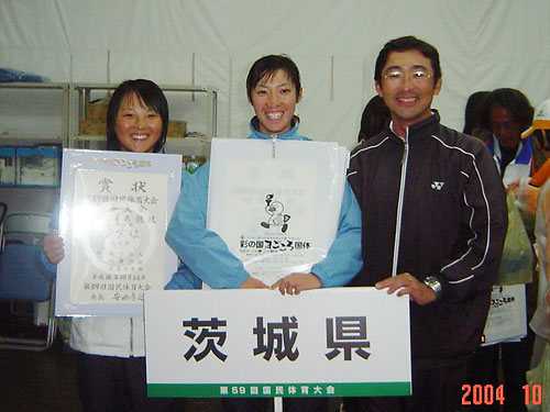 茨城県少年女子:鈴木監督(右)・細貝選手(左)・斉藤選手(中央)