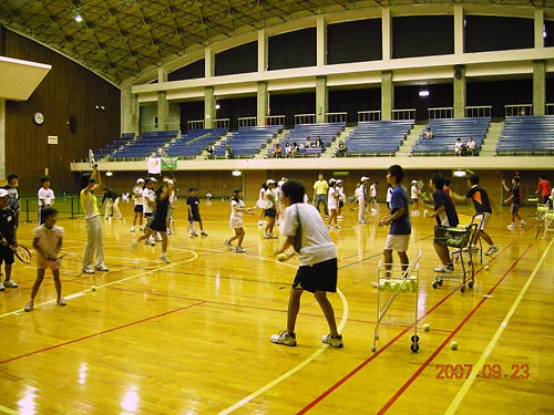 雨天の為室内でボレー